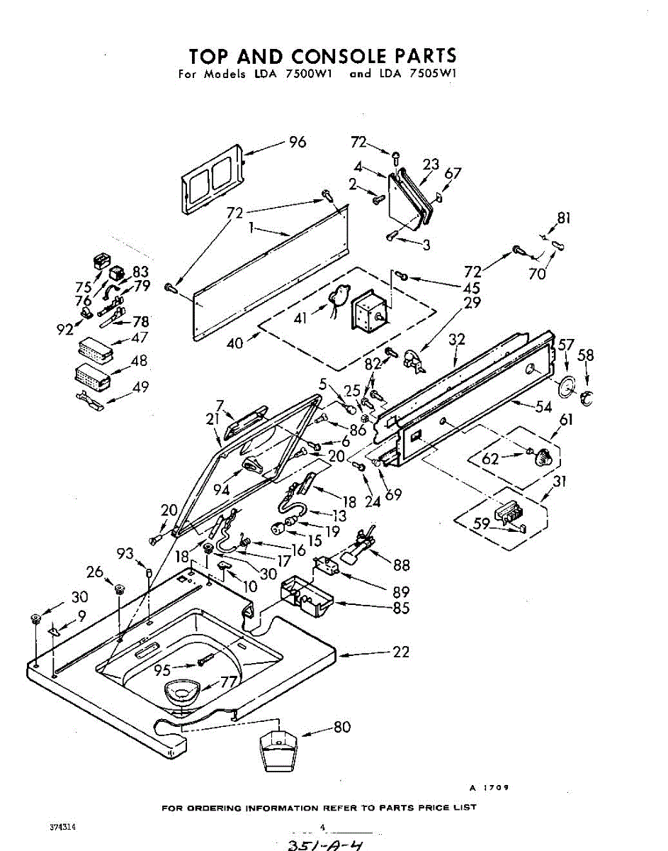 Parts for Whirlpool LDA7500W1: 04 - Top And Console Parts