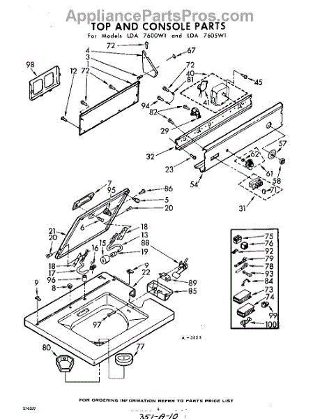 Parts for Whirlpool LDA7600W1: 04 - Top And Console Parts