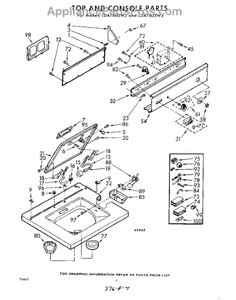 Parts for Whirlpool LDA7600W3: 04 - Top And Console Parts