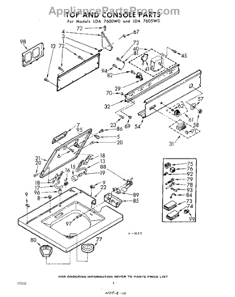 Parts for Whirlpool LDA7605W0: 04 - Top And Console Parts