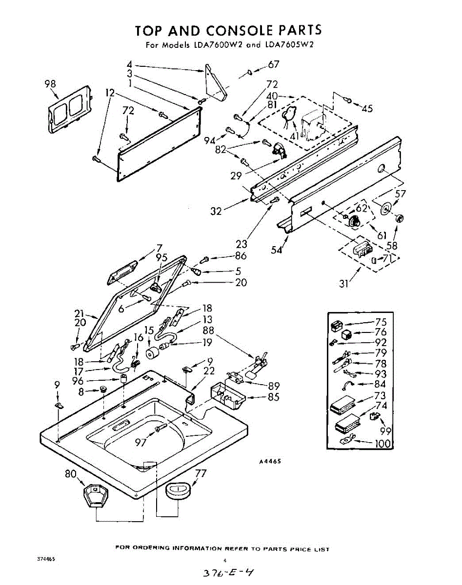 Parts for Whirlpool LDA7605W2: 04 - Top And Console Parts