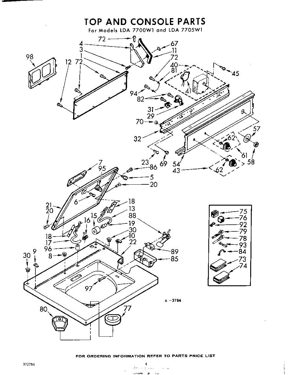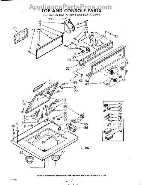 Parts for Whirlpool LDA7705W1: 04 - Top And Console Parts