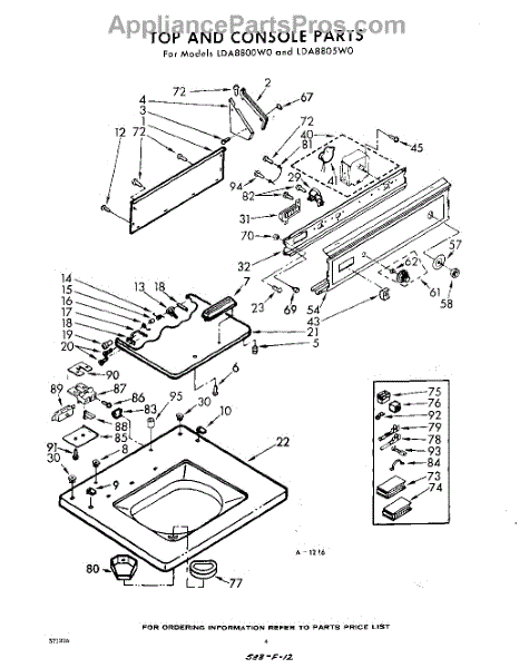 Parts for Whirlpool LDA8800W0: 04 - Top And Console Parts