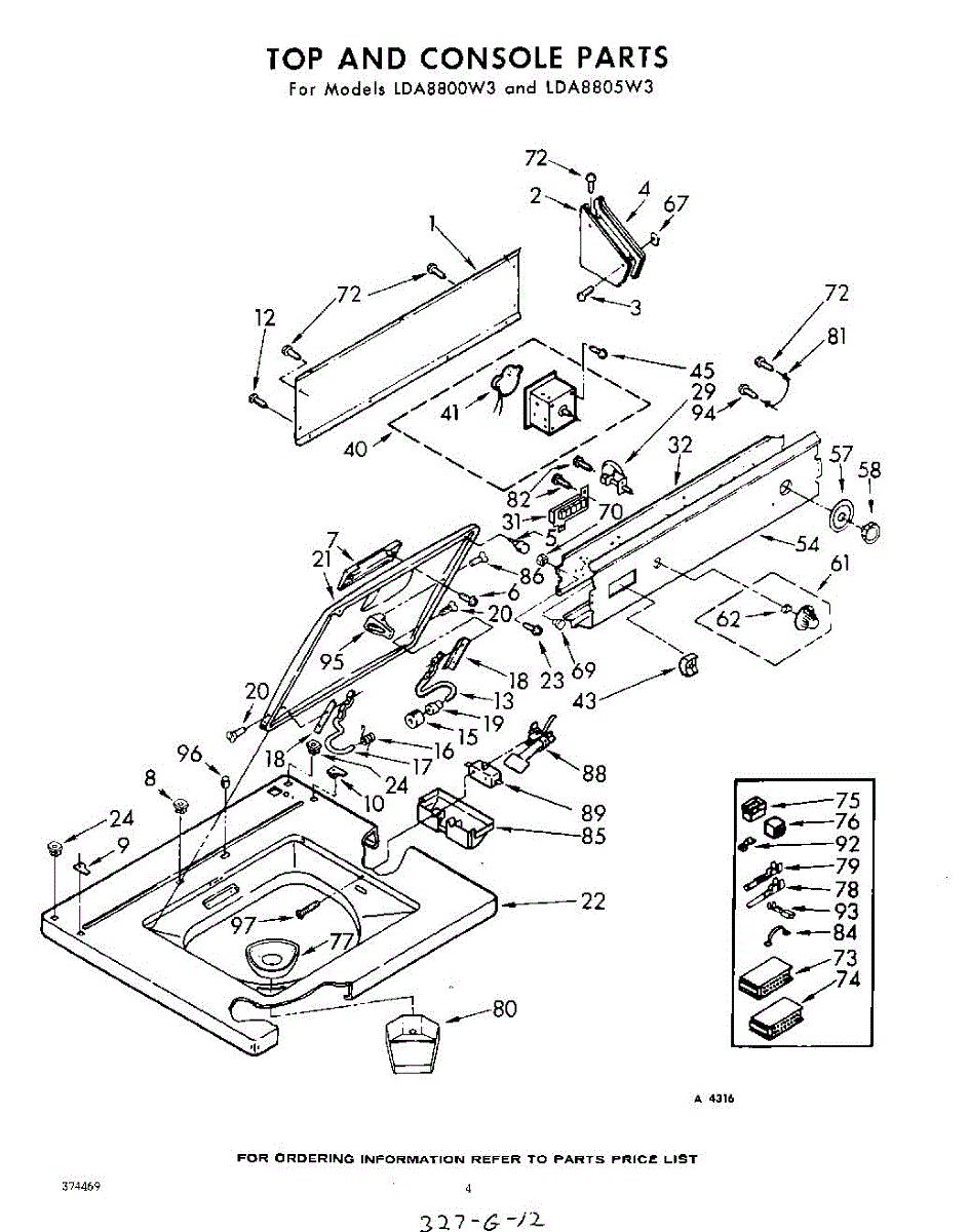 Parts for Whirlpool LDA8800W3: 04 - Top And Console Parts