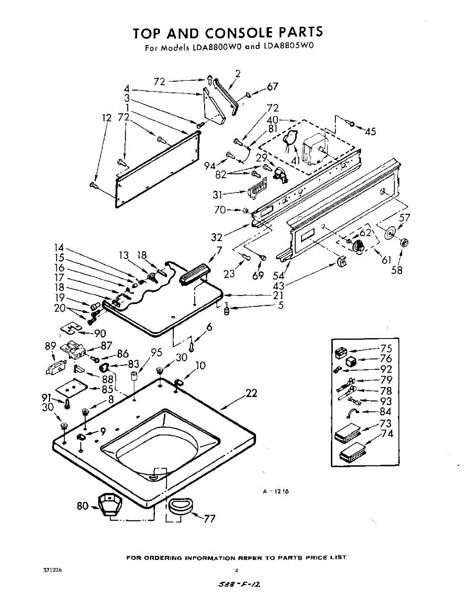 Parts for Whirlpool LDA8805W0: 04 - Top And Console Parts