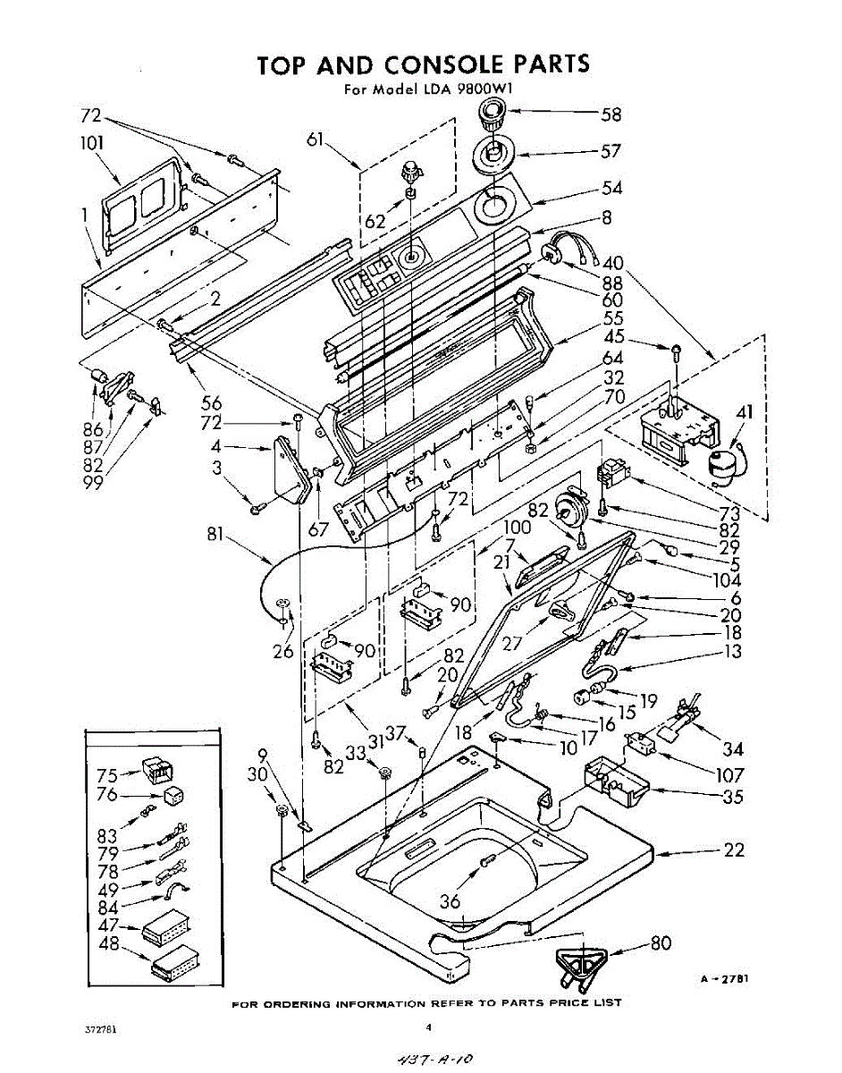 Parts for Whirlpool LDA9800W1: 04 - Top And Console Parts