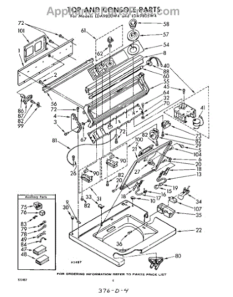 Parts for Whirlpool LDA9800W4: 04 - Top And Console Parts