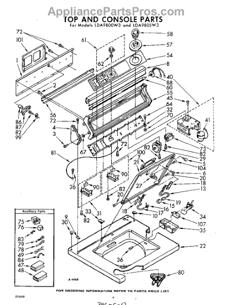 Parts for Whirlpool LDA9805W3: 04 - Top And Console Parts