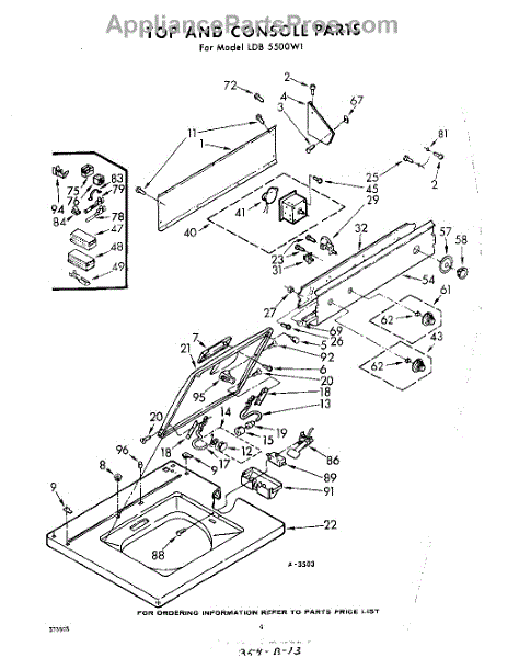 Parts for Whirlpool LDB5500W1: 04 - Top And Console Parts