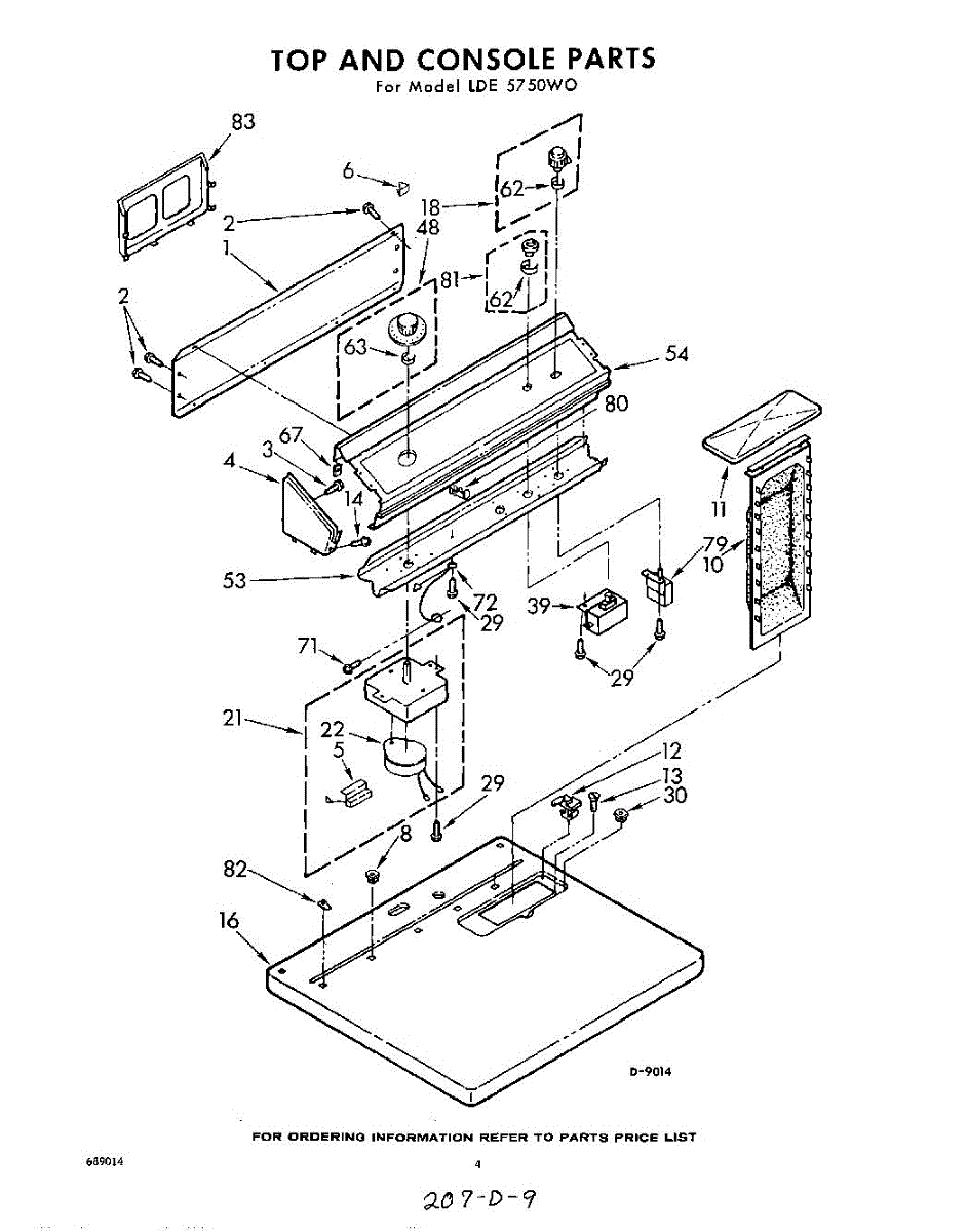 Parts for Whirlpool LDE5750W0: 04 - Top And Console Parts