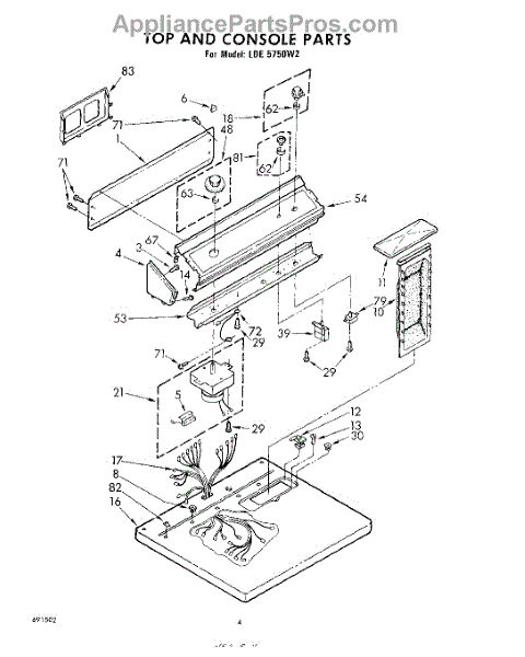 Parts for Whirlpool LDE5750W2: 04 - Top And Console Parts