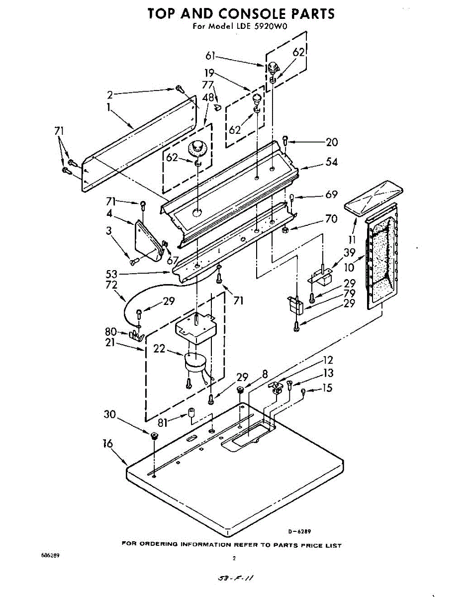 Parts for Whirlpool LDE5920W0: 02 - Top And Console Parts