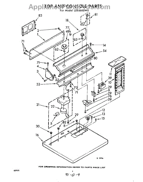 Parts for Whirlpool LDE6600W0: 04 - Top And Console Parts