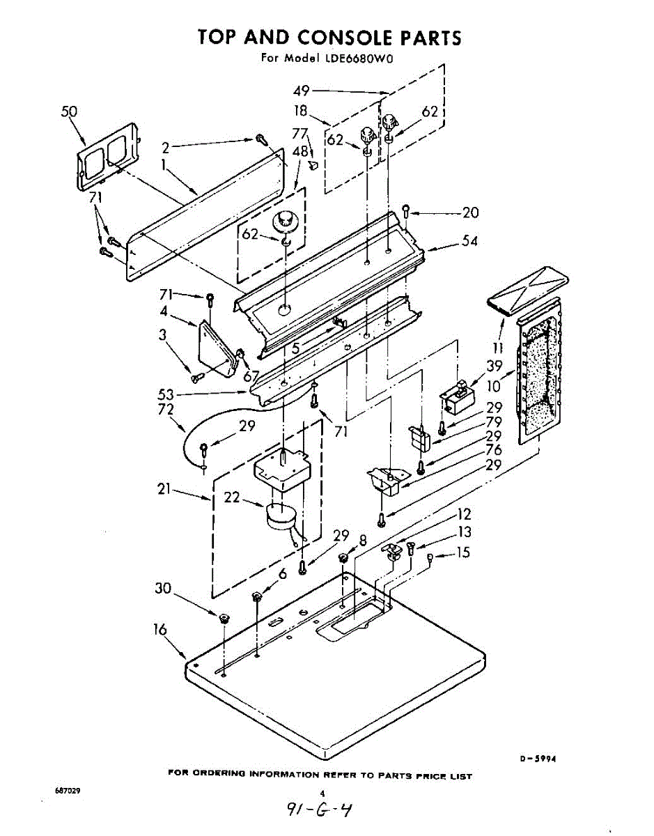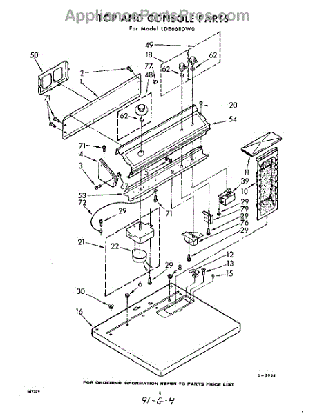 Parts for Whirlpool LDE6680W0: 04 - Top And Console Parts