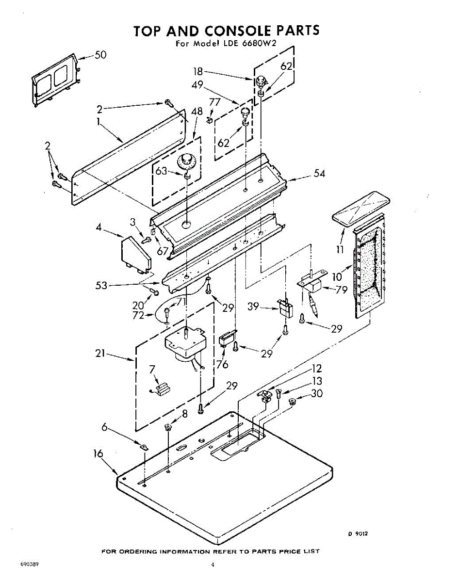 Parts for Whirlpool LDE6680W2: 04 - Top And Console Parts