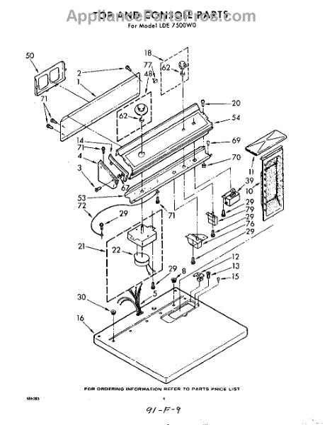 Parts for Whirlpool LDE7500W0: 04 - Top And Console Parts