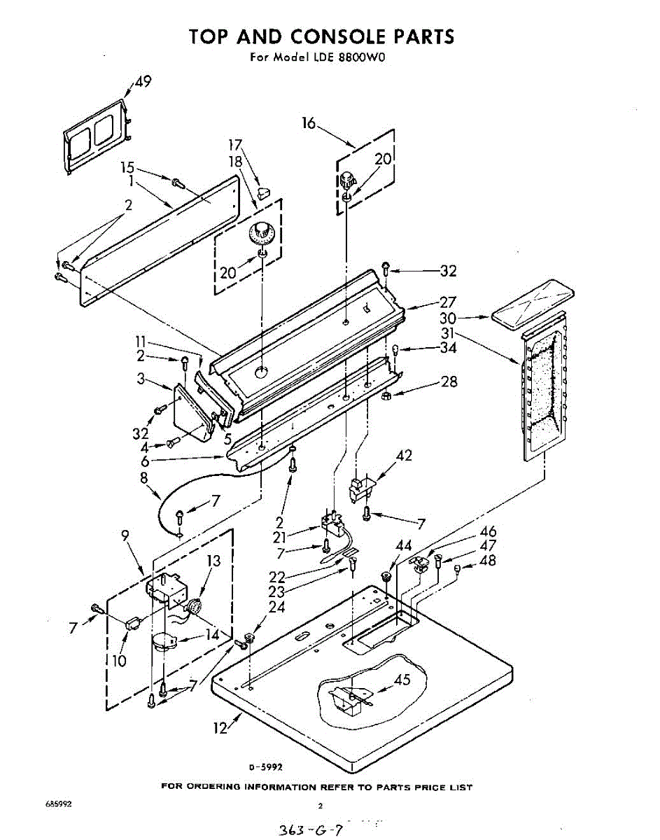 Parts for Whirlpool LDE8800W0: 02 - Top And Console Parts