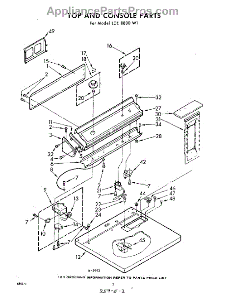 Parts for Whirlpool LDE8800W1: 02 - Top And Console Parts