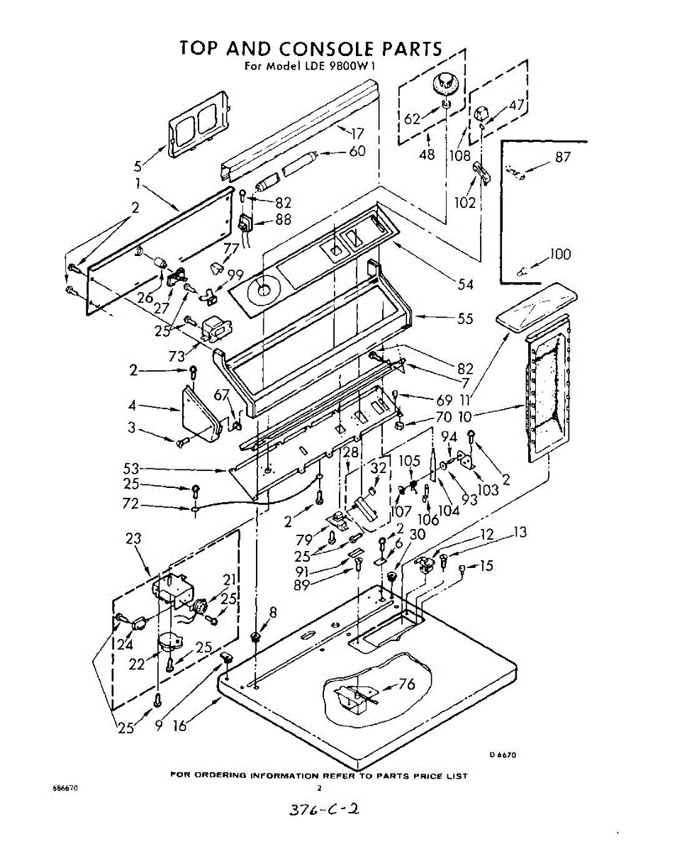Parts for Whirlpool LDE9800W1: 02 - Top And Console Parts