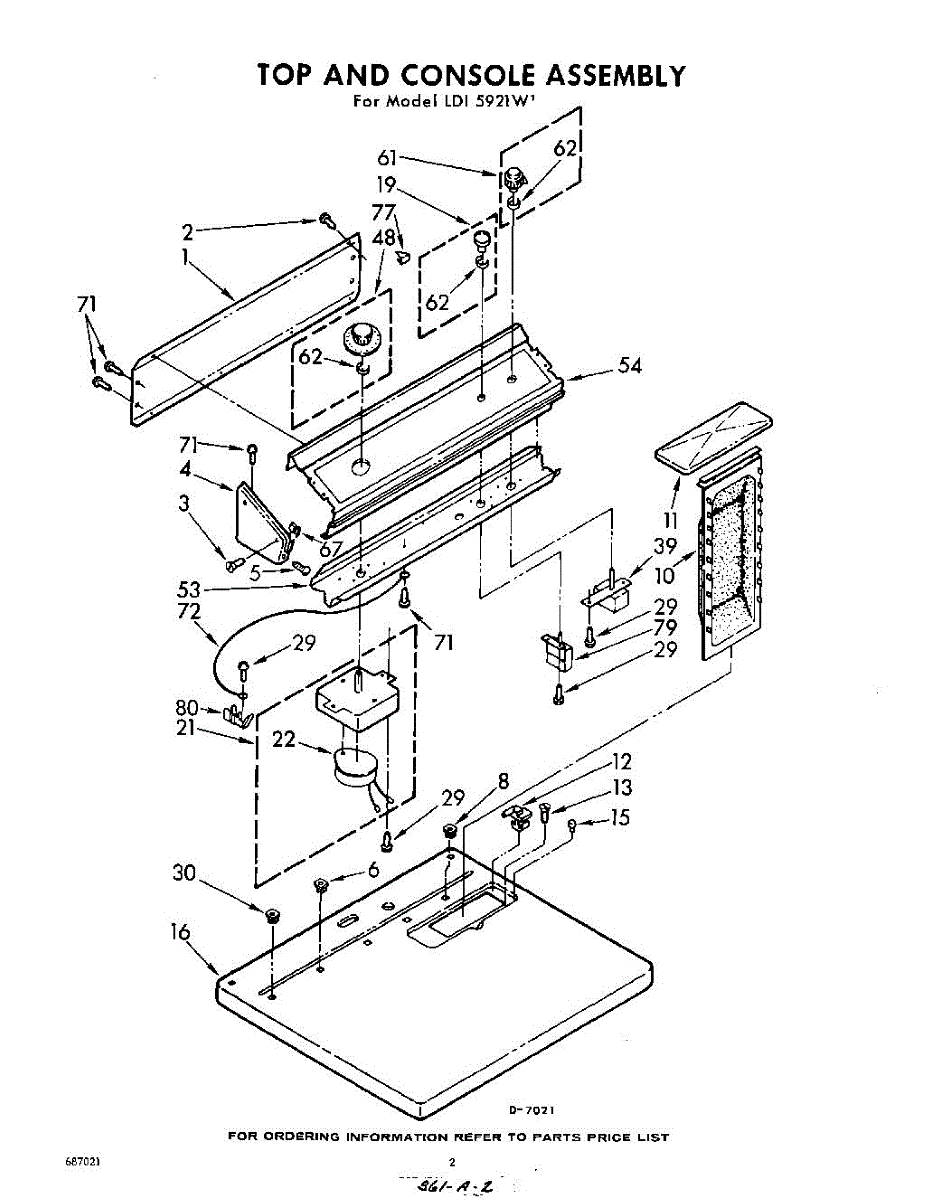 Parts for Whirlpool LDI5921W1: 02 - Top And Console Parts
