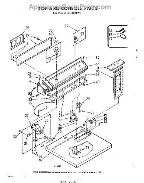 Parts for Whirlpool LDI8801W0: 02 - Top And Console Parts