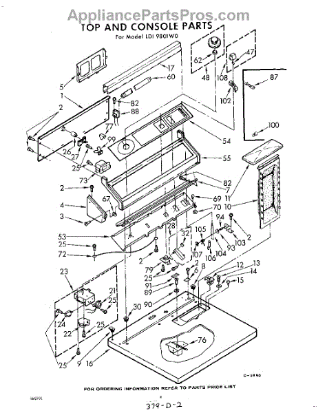 Parts for Whirlpool LDI9801W0: 02 - Top And Console Parts