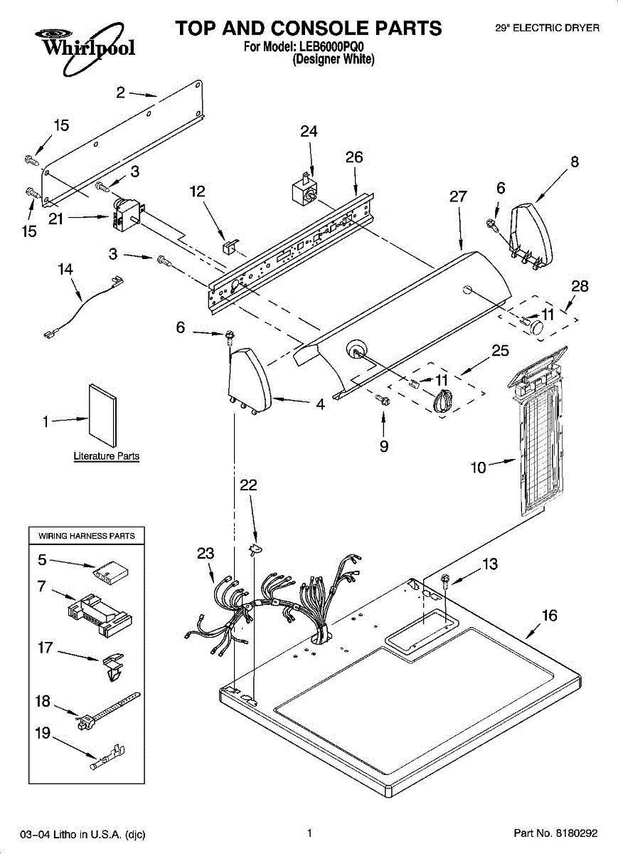 Dryer not starting or controls unresponsive? This wire harness connects electrical components. Moderate DIY repair—requires panel removal.