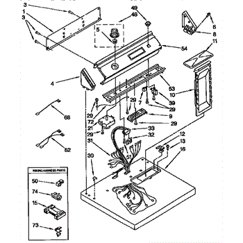 This harness clip secures appliance wiring to the cabinet or components to prevent rubbing, pinching, and interference with moving parts. It keeps wiring routed neatly for reliable operation and reduced risk of abrasion-related failures. What it does: