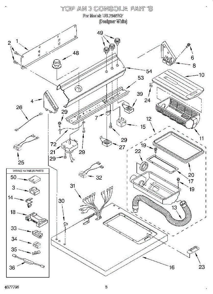 Wire harness assembly that routes power and control signals between dryer components. Replace if wires are damaged, worn, broken, or connections are loose.