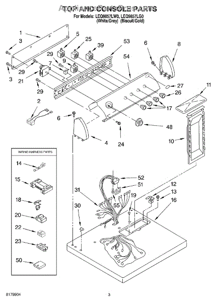 Parts for Whirlpool LEQ9857LW0: 02 - Section Parts