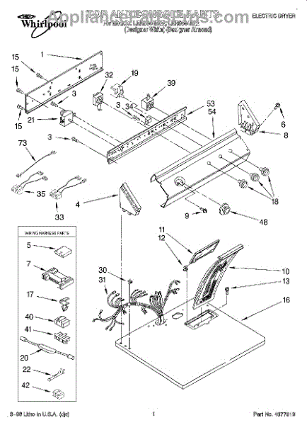 Wire harness assembly that routes power and control signals between dryer components. Replace if wires are damaged, worn, broken, or connections are loose.