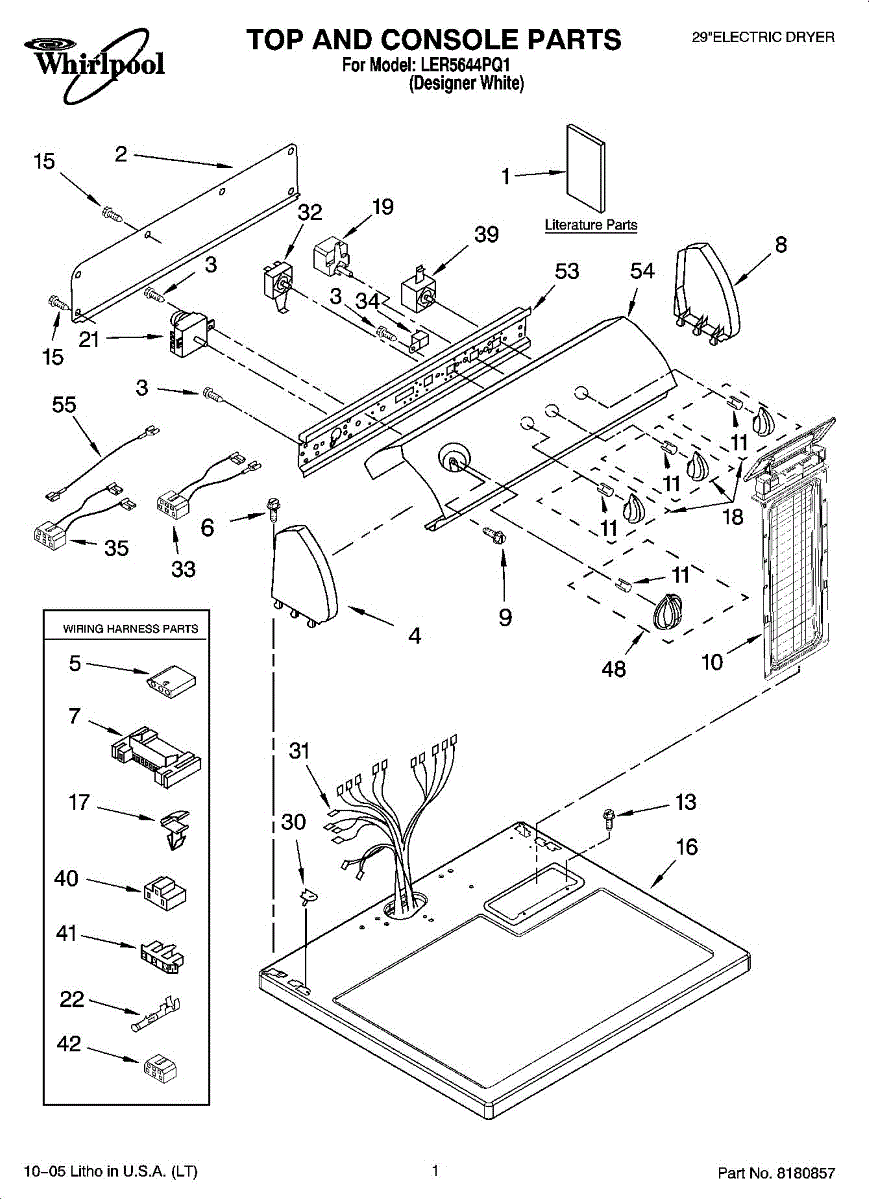 Wire harness assembly that routes power and control signals between dryer components. Replace if wires are damaged, worn, broken, or connections are loose.