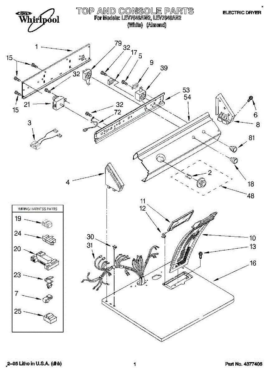 Wire harness assembly that routes power and control signals between dryer components. Replace if wires are damaged, worn, broken, or connections are loose.