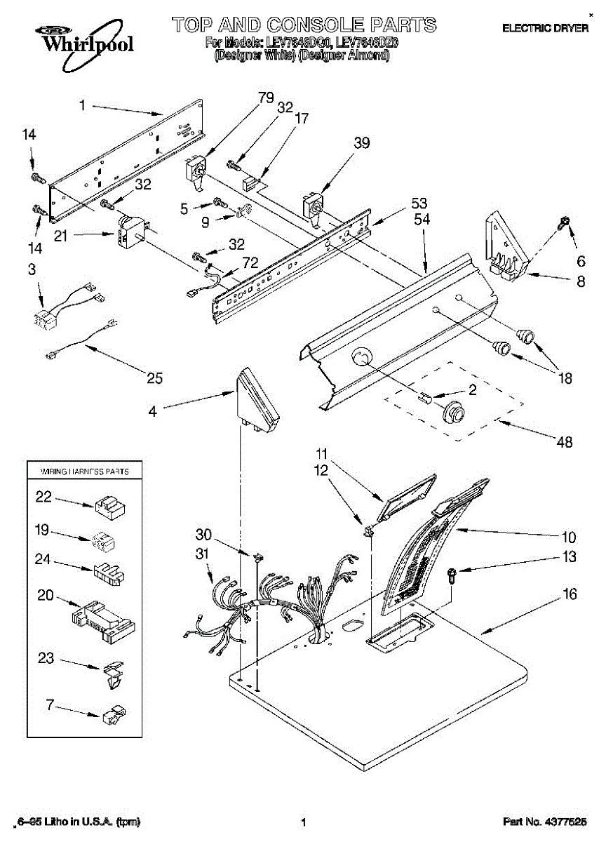 Wire harness assembly that routes power and control signals between dryer components. Replace if wires are damaged, worn, broken, or connections are loose.