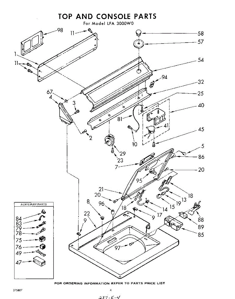 Parts for Whirlpool LFA3000W0: 04 - Top And Console Parts