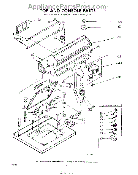 Parts for Whirlpool LFA3800W1: 04 - Top And Console Parts