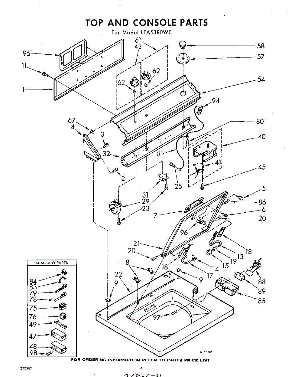 Parts for Whirlpool LFA5380W0: 04 - Top And Console Parts