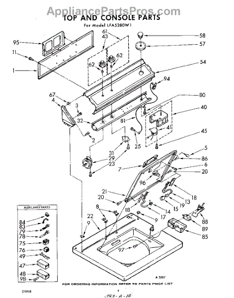 Parts for Whirlpool LFA5380W1: 04 - Top And Console Parts