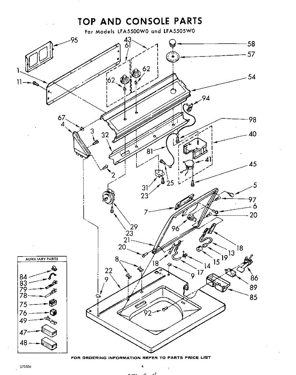Parts for Whirlpool LFA5500W0: 04 - Top And Console Parts