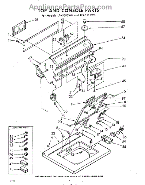 Parts for Whirlpool LFA5505W0: 04 - Top And Console Parts