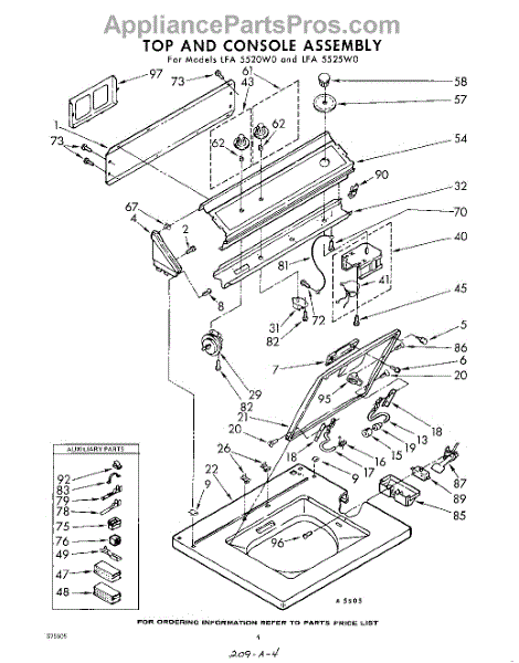 Parts for Whirlpool LFA5525W0: 04 - Top And Console Parts