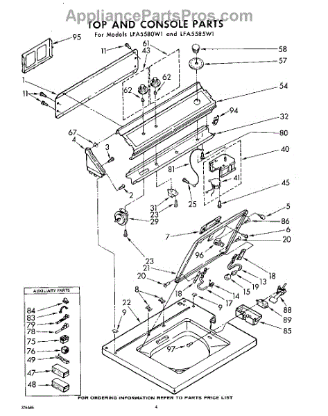 Parts for Whirlpool LFA5585W1: 04 - Top And Console Parts