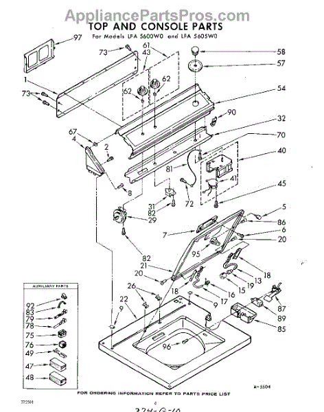 Parts for Whirlpool LFA5605W0: 04 - Top And Console Parts