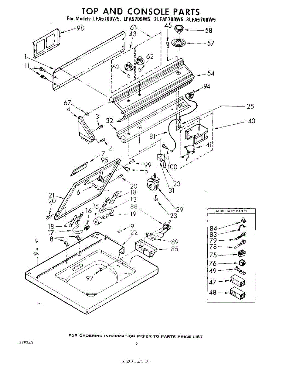 Parts for Whirlpool LFA5705W5: 02 - Top And Console Parts
