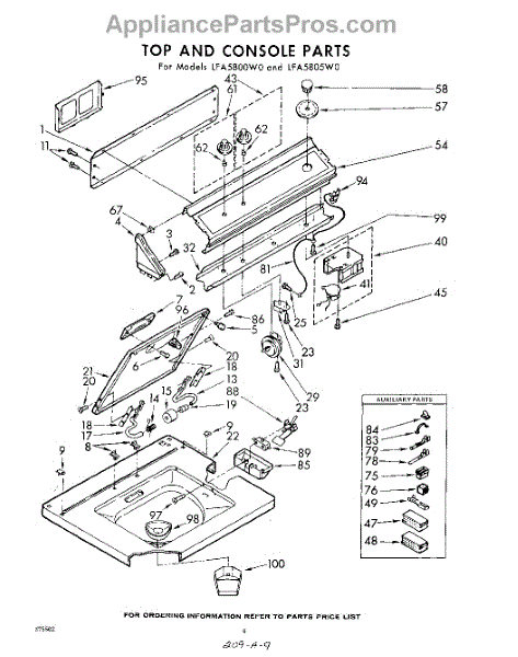 Parts for Whirlpool LFA5800W0: 04 - Top And Console Parts