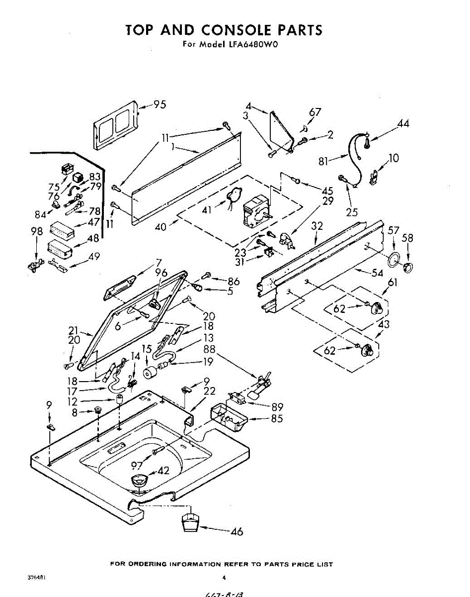 Parts for Whirlpool LFA6480W0: 04 - Top And Console Parts