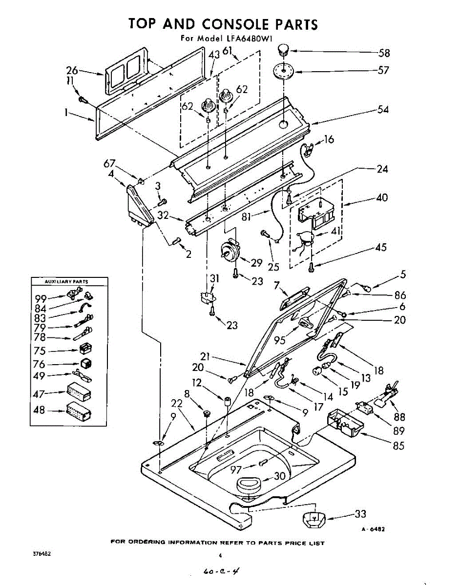Parts for Whirlpool LFA6480W1: 04 - Top And Console Parts