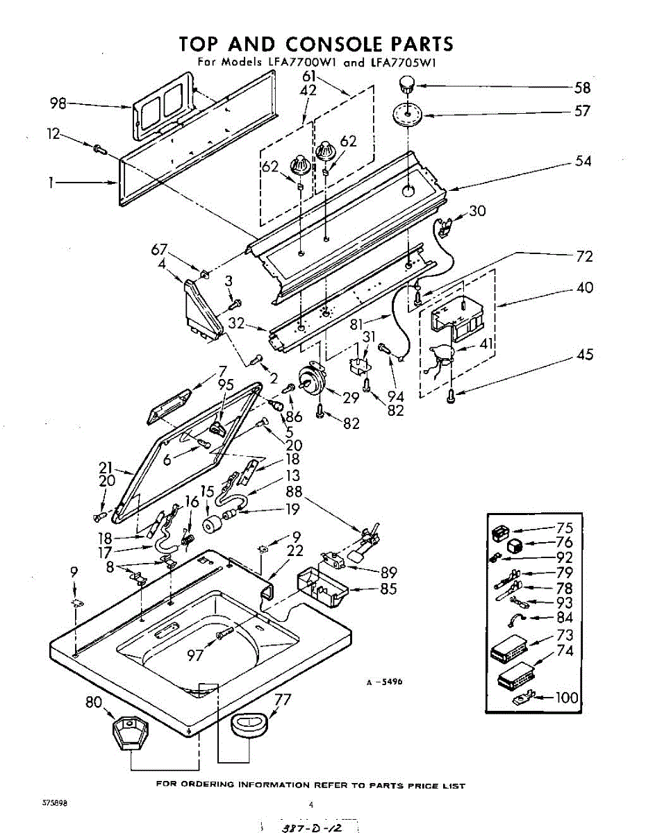 Parts for Whirlpool LFA7705W1: 04 - Top And Console Parts