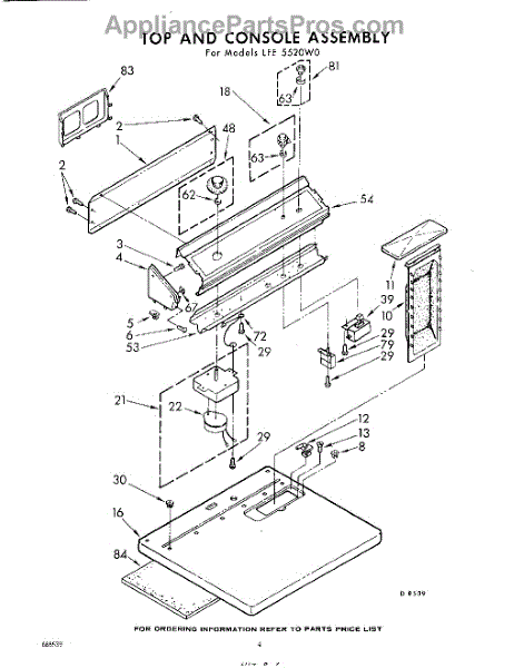 Parts for Whirlpool LFE5520W0: 04 - Top And Console Parts