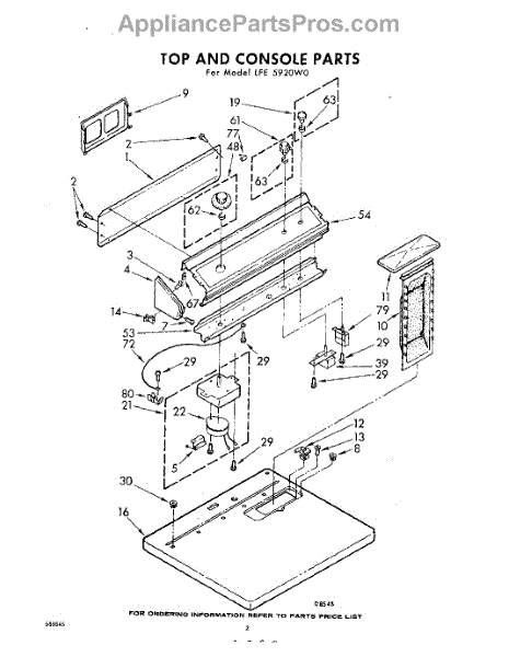 Parts for Whirlpool LFE5920W0: 02 - Top And Console Parts